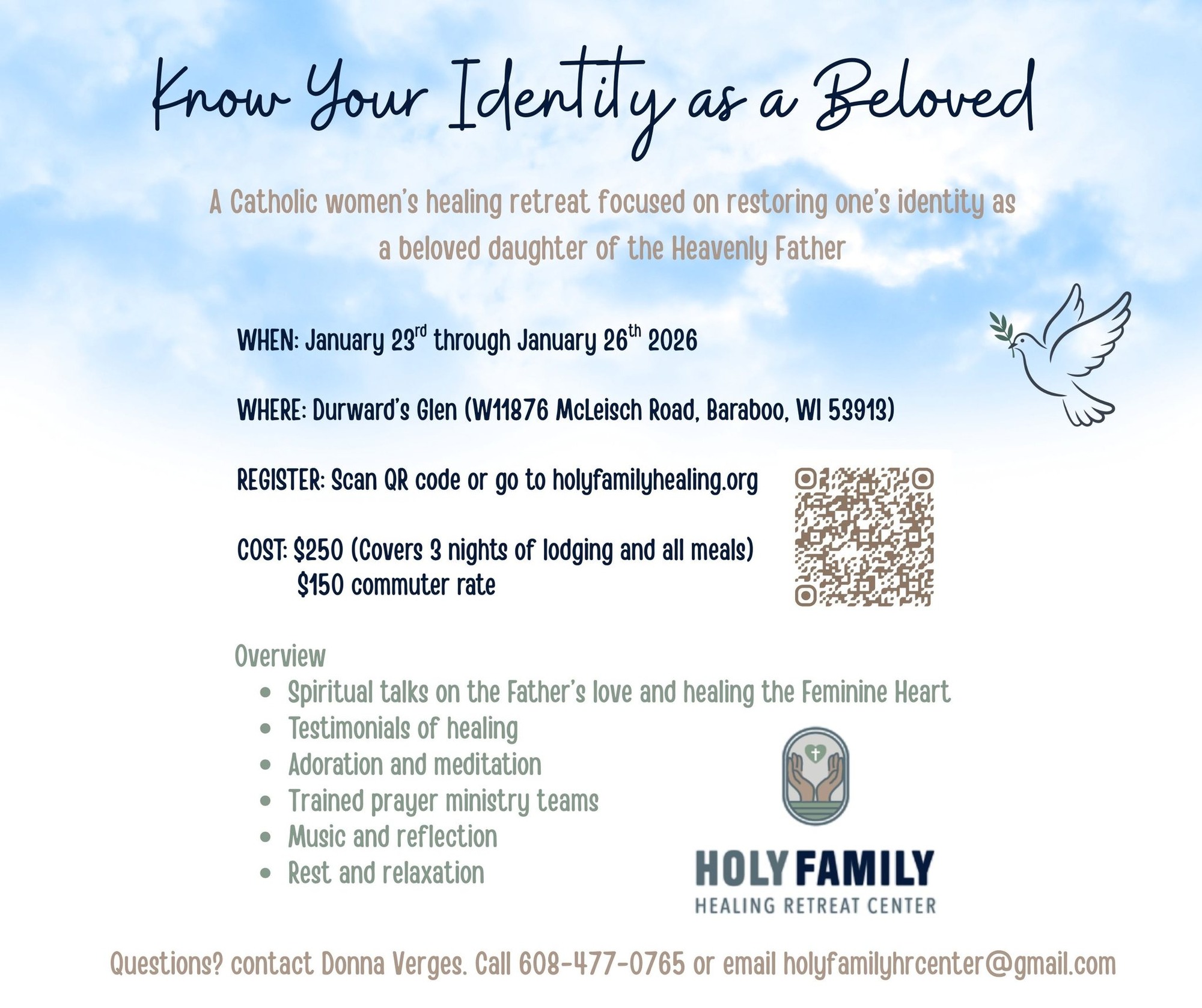 A Catholic Women's healing retreat focused on restoring one's identity as a beloved daughter of the heavenly Father will be held at Durward's Glen on January 23-25.