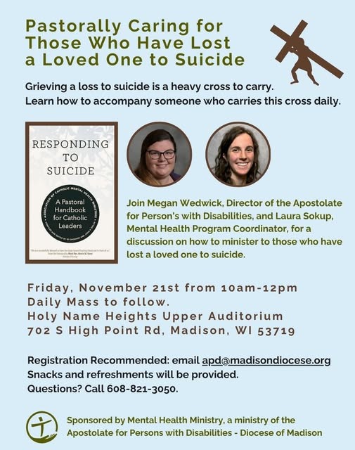 Mental Wellness Matters!If you have mental health concerns, challenges, supporting a loved one, or want to find out more, the Diocese of Madison has a wealth of resources and information. Click below. Diocese of Madison Mental Health Resources