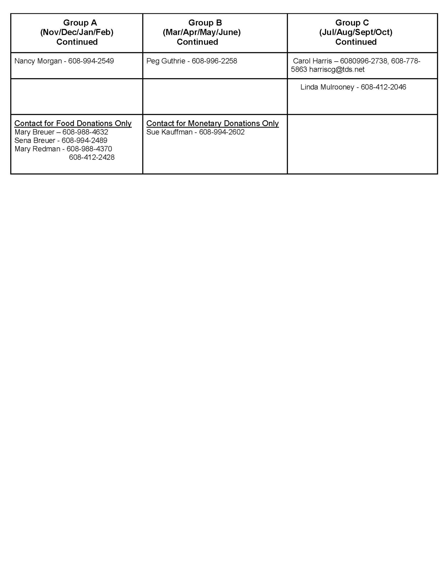 St. Mary Schedules